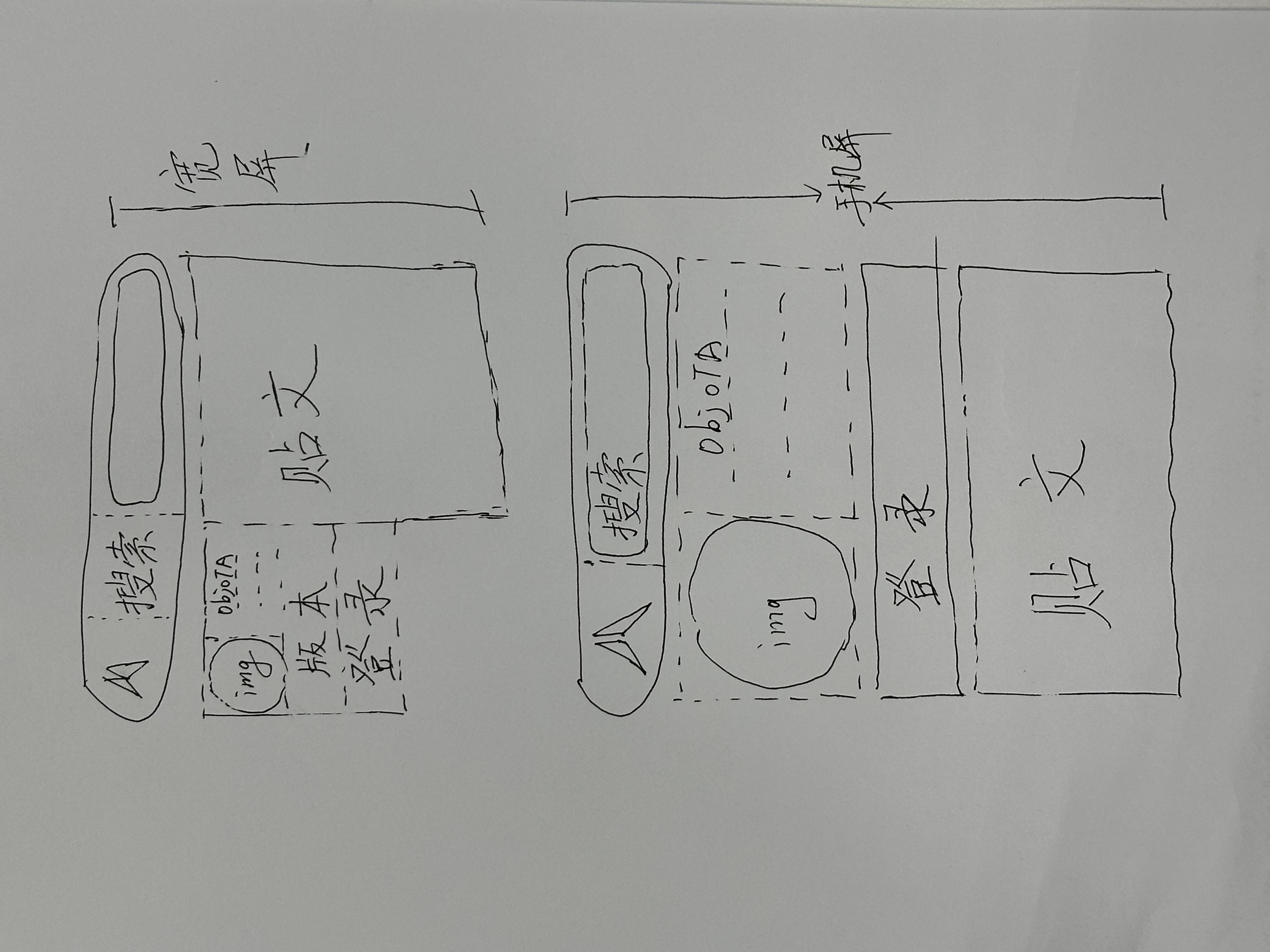 本网站手机屏幕自适应的顶部区域手绘草图。