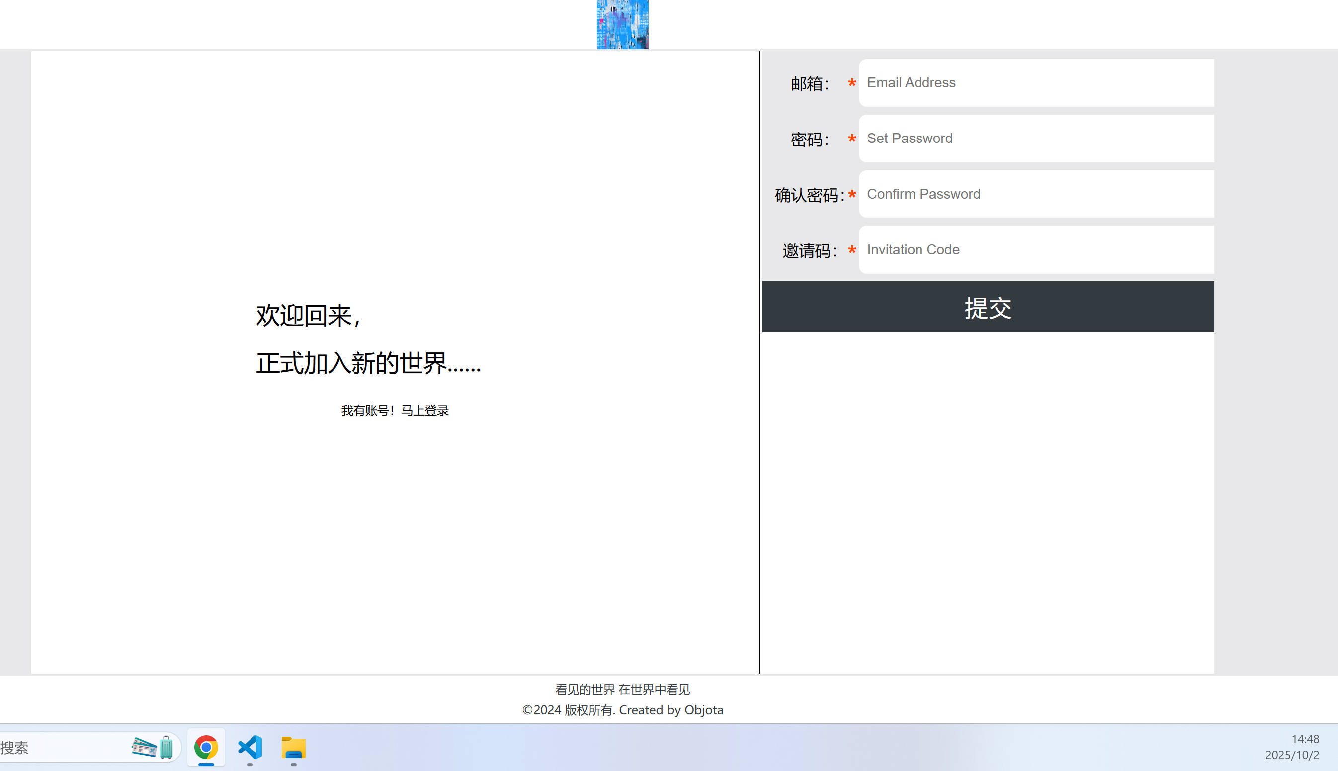 注册页面的大屏显示效果。