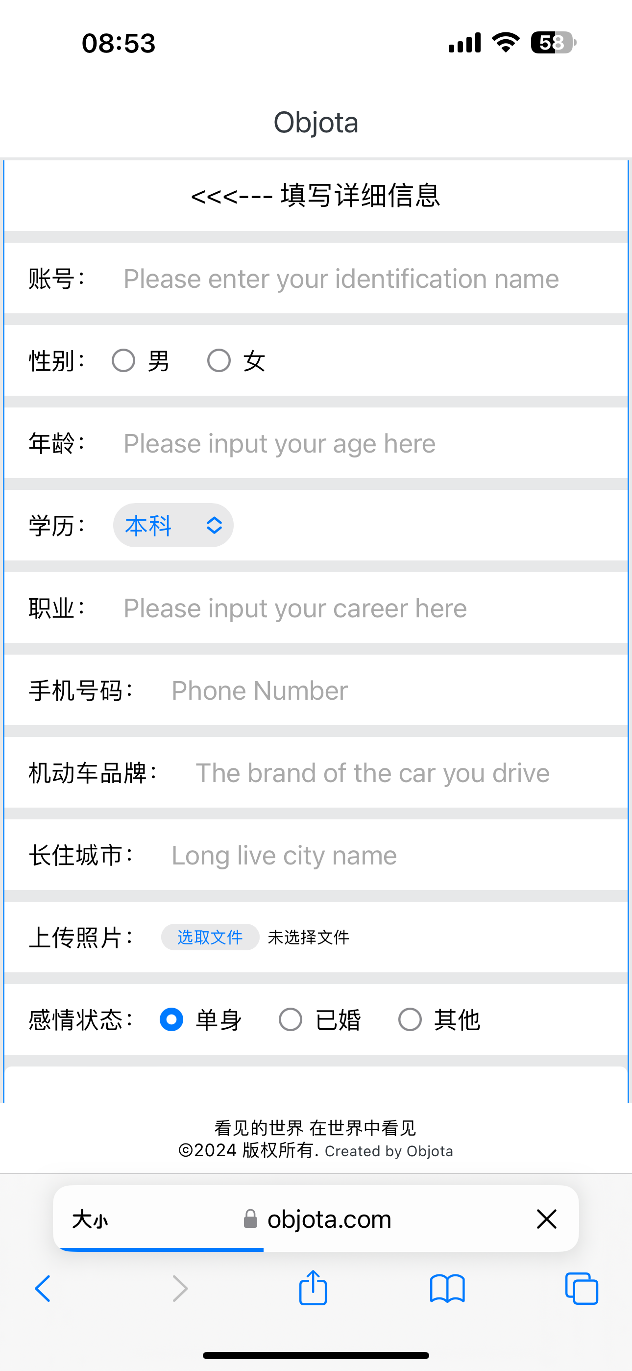 个人资料填写的界面。