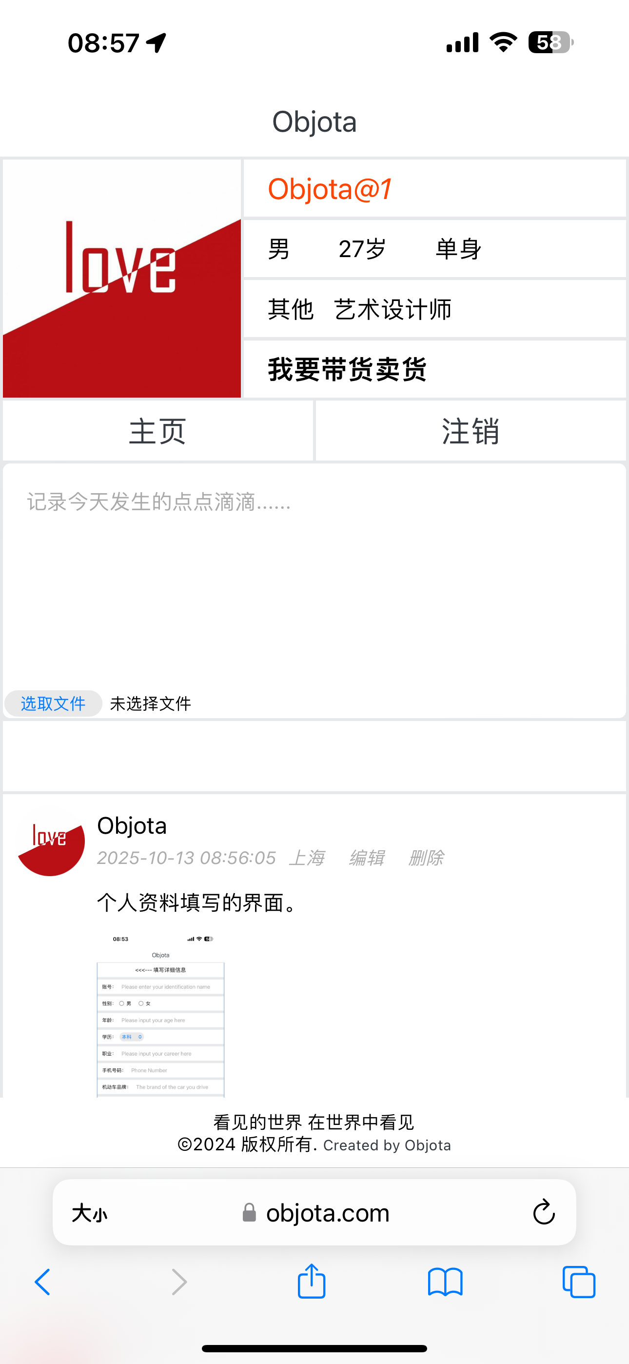 完成注册以后,会自动跳转到登录界面,输入邮箱地址和登录密码,成功登录以后自动跳转到下面这张图片的页面,点击LOVE这张图片的位置,就会弹出来个人资料补充界面(参见上一条贴文)。